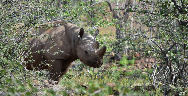 Die Lodge hat sich dem Regierungsprogramm zum Erhalt der Spitzmaulnashörner angeschlossen. Die beiden Bullen Alex, Nawalda sowie das Weibchen Sweetie und drei Jungtiere leben auf den 12.000 Hektar der Lodge. In Vietnam und China gilt das Horn der „black Rhinos“ noch immer als Statussymbol und Aphrodisiakum, das Marktpreise von einer halben Million Dollar erzielt. „Die Wilderer bestechen Einheimische, die wissen, wo sich die Nashörner aufhalten, mit lächerlichen 2.000 Dollar. Dann fliegen sie mit dem Helikopter ein und töten die Tiere“, erzählt Guide Charles.